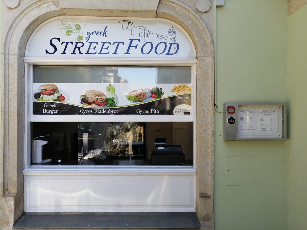 Wir sind ein familiär geführtes griechisches Restaurant und bieten an unserem "Street Food"-Fenster griechische Schnellgerichte zum Mitnehmen an.